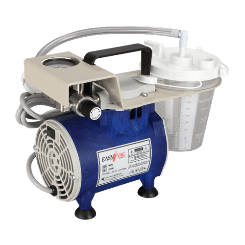 El modelo Easy Vac tiene un brazo metálico protector que no solo sostiene el frasco sino también protege el manómetro y la perilla contra accidentes.