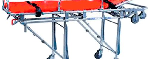 La seguridad fue y palancas de control de la derecha también desbloquear patas delanteras y traseras, respectivamente, cuando la descarga del vehículo, y las tiras de polietileno cubiertas y choque piernas a prueba al mismo tiempo evitar el deslizamiento y permite la camilla rodante suavemente dentro y fuera del vehículo.